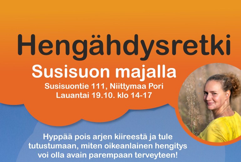 Luulisi, että jokainen osaa hengittää? Vaan nykypäivän staattisen työn ja stressin vaikutuksesta moni hengittää huonosti. Hapenpuute vaikuttaa kipuihin ja vireystilaan sekä elimistön koko toimintaan. Hengitä paremmin ja voi paremmin! Luento sisältää tietoa ja harjoituksia oikeanlaisesta hengittämisestä. Luennon voi tilata myös omaan tilaisuuteen tai tyhypäivään. Ota yhteyttä ja kysy lisää!